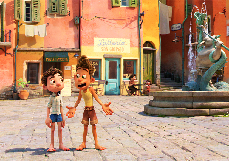 Luca‘s cast includes voice actors you may recognize, such as Maya Rudolph and Jim Gaffigan, who play Luca’s mom Daniela and dad Lorenzo. Jacob Tremblay plays the titular role, alongside Jack Dylan Grazer as Alberto. Keep an ear out for John Ratzenberger—known for Pixar roles such as Hamm in Toy Story, Mack in Cars and more—and see if you can pick out which Character has his voice.