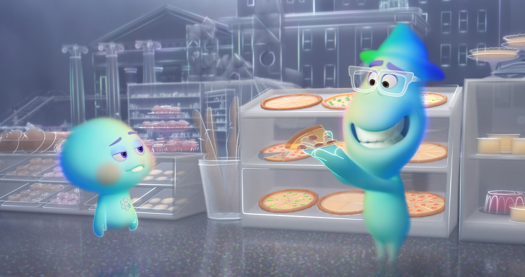 “It took a huge amount of time, meetings and concept art,” Powers said. “The story has been in development for over four years. But we finally found the look we wanted. We didn’t want the characters to look ghostly, so we chose a glowing translucent green/blue color. We also decided that every living being should have a soul form that represents their features when they’re on Earth, such as Joe’s glasses and fedora. Unborn souls haven’t had a human form yet, so we purposefully gave them an unformed amorphous look.”