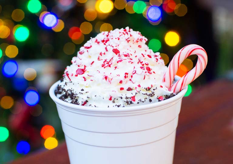 You can find delectable drinks all around, like at Isle of Java in Disney’s Animal Kingdom® Theme Park, where your coffee and hot cocoa may be infused with winter-time flavors such as peppermint, s’mores and more. Don’t forget you can redeem your Disney Rewards Dollars toward your beverage!1