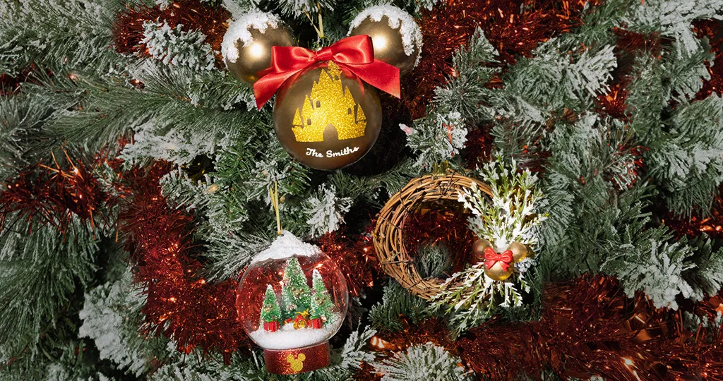 This holiday season, deck your tree with a little more Disney and create three sparkling DIY ornaments themed after Mickey Mouse and Minnie Mouse. Follow these simple steps to create an elegant Mickey Mouse tree snow globe ornament, a customizable Disney Parks-inspired keepsake ornament and a classic Minnie Mouse wreath ornament.