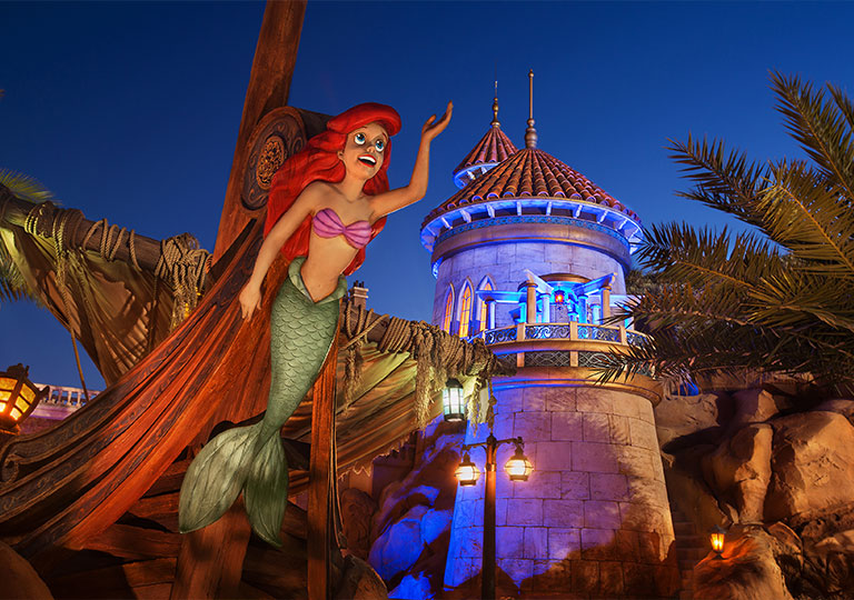 In Magic Kingdom® Park or Disney California Adventure® Park, relive favorite moments from The Little Mermaid as you follow Ariel’s journey from sea to land, along with her friends and some seriously catchy tunes.