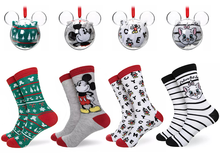 Help fans of the season keep their feet from freezing with iconic Mickey socks featuring classic holiday symbols.