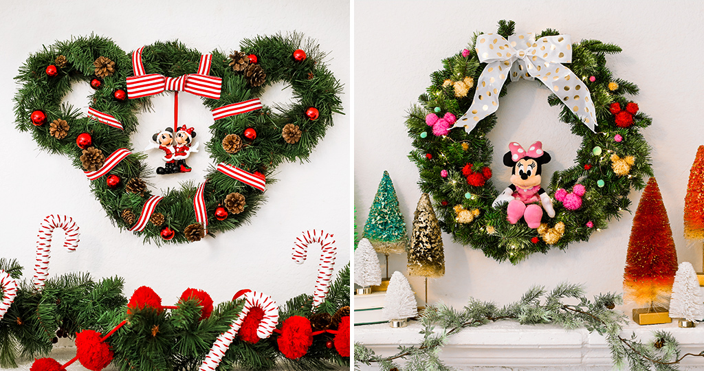 Looking to hang some holiday cheer above your mantel or right on your own front door? Round up your elves because we’ve got a pair of adorably welcoming wreath projects perfect for little helping hands. Before diving in, use your Disney Rewards Dollars toward a few holiday decorations, which can be found at Disney store or shopDisney.com.1 Your 10% Cardmember savings can also be used when purchasing these items at Disney store or on shopDisney.com.2 Then, follow our easy steps and, in no time, your house will be sporting custom Mickey and Minnie wreaths to celebrate the most magical season of all.