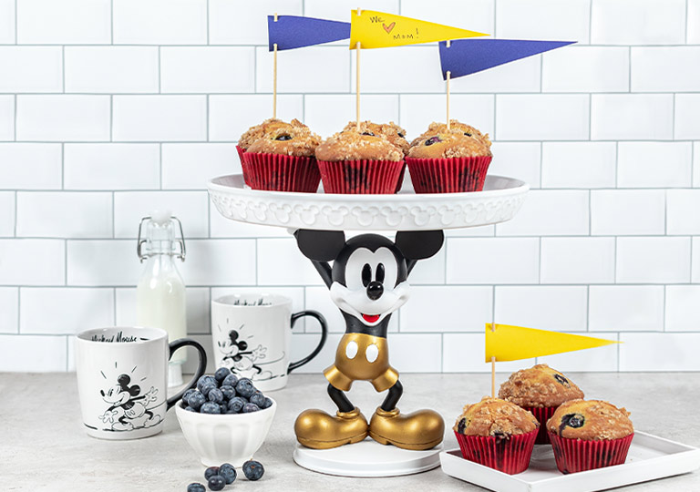 Let Mickey Mouse offer your mom a delicious tray of fresh pastries. Bake or buy her favorite muffins, whether blueberry, banana nut or a whole assortment. Then, make an eye-catching presentation with the Mickey Mouse Cake Stand. For a sweet, personal touch, sprinkle crumbly bits of streusel on top of the muffins, serve some extra berries on the side or include a handwritten note using toothpicks and colorful paper.