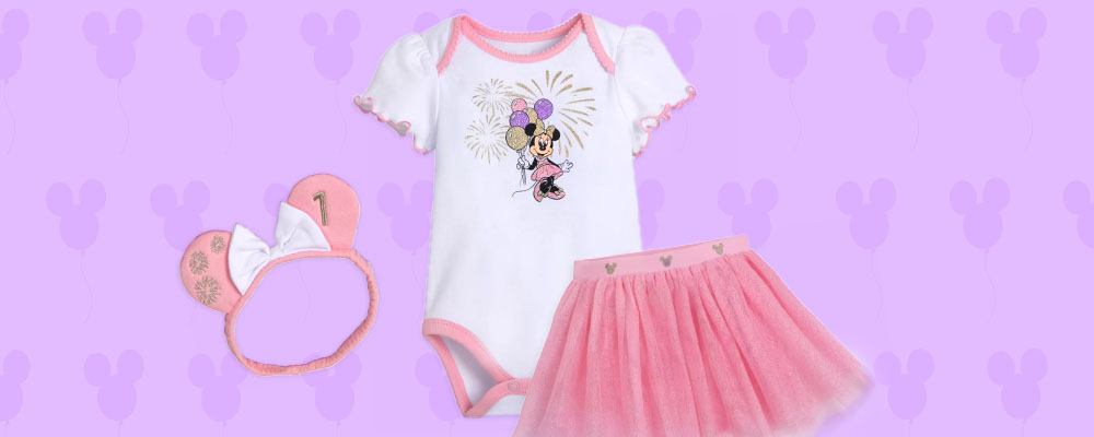 1. Minnie Mouse First Birthday Gift Set—Celebrate their first yEAR in style with this adorable, sparkly ensemble.