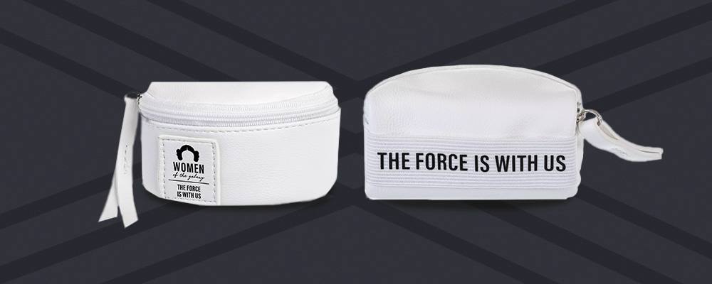 Become one with the brave women of the Star Wars saga when you carry this wristlet bag. The simulated leather design features “The Force Is With Us” panel on one side and a “Women of the Galaxy” label on the other.