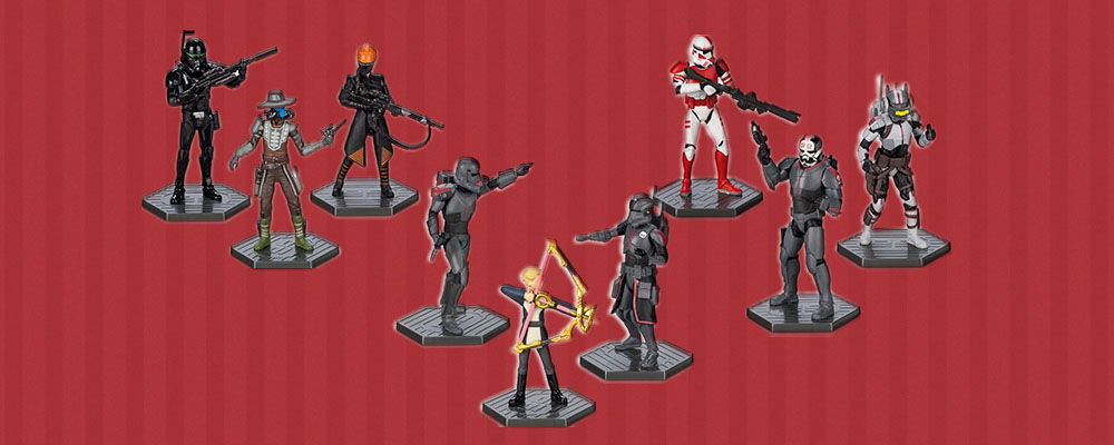 This set of nine colorful clones enhances any epic collection with the baddest batch in the galaxy, including Omega, Echo, Hunter, Crosshair, Tech, Wrecker, Fennec Shand, Cad Bane and a clone trooper.