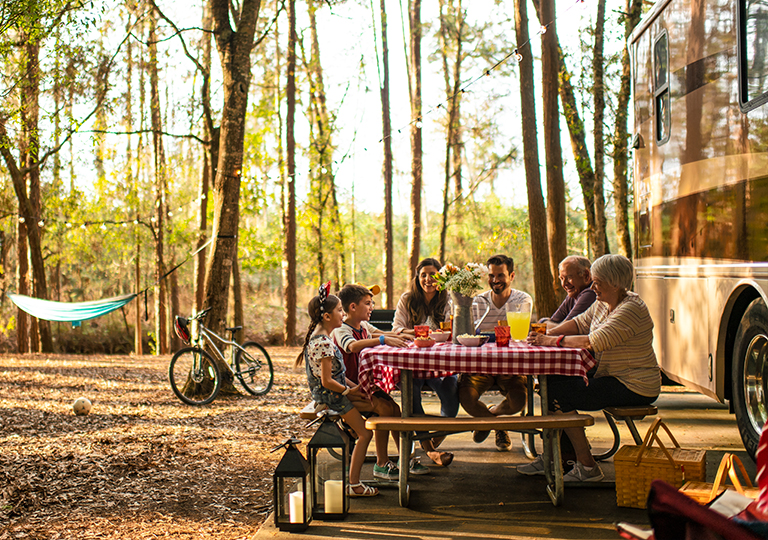 Go camping in style at Disney’s Fort Wilderness® Resort & Campground at Walt Disney World® Resort. Choose from a variety of campsites at different budgets, fully equipped with plenty of amenities such as picnic tables, charcoal grills and more.