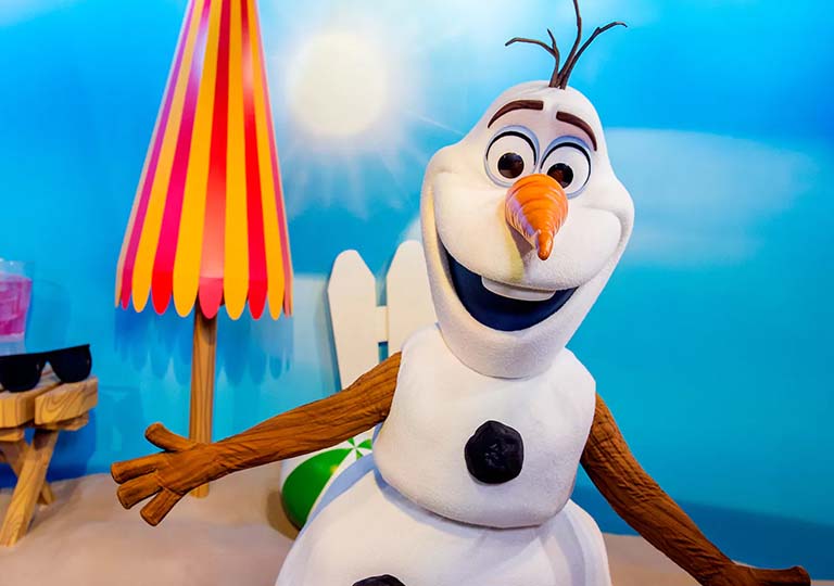 Olaf steps into the Celebrity Spotlight to take photos with friends old and new. You may even get to give him a warm hug—well, not too warm!