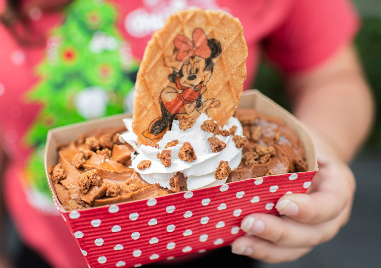 Gingerbread’s not just for houses and cookies! This gingerbread soft-serve sundae is available daily and garnished with whipped cream, gingerbread pieces and a Minnie Mouse waffle topper.