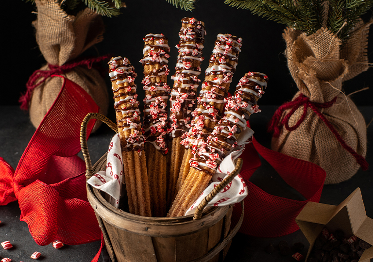 Churros are an iconic part of the Disneyland® Resort experience, but this jolly flourish adds an unmistakably festive flair. Featuring a cinnamon churro with white and dark chocolate drizzle, this sweet treat is topped off with crushed candy canes. We’re pretty sure this is what Santa noshes on to keep spirits bright during his big night!