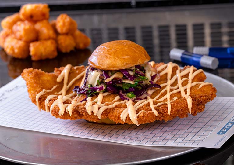 Packing a big appetite? Then head to the Pym Test Kitchen, where Ant-Man, The Wasp and a team of research chefs harness the shrink-and-grow technology of Pym Particles to unveil exceptional dishes like the Not so Little Chicken Sandwich. With fried chicken breast, teriyaki and red chili sauces, and pickled cabbage slaw served on brioche, alongside crispy potato bites, it provides the perfect shareable power-up at Disney California Adventure® Park.