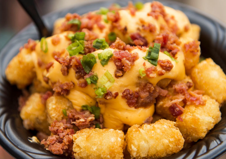 Crunchy on the outside, tender on the inside, gorgeously golden tots get a special spin in this dish. Behold, a mouthwatering plate of fully loaded tots! At The Friar’s Nook in Fantasyland, anytime is a great time for tots. Start your day off right with Sausage and Gravy Tots, or try the Creamy Bacon Macaroni & Cheese Tots, Curry Brat Tots, or Tots and Cheese Sauce at lunch and dinner.