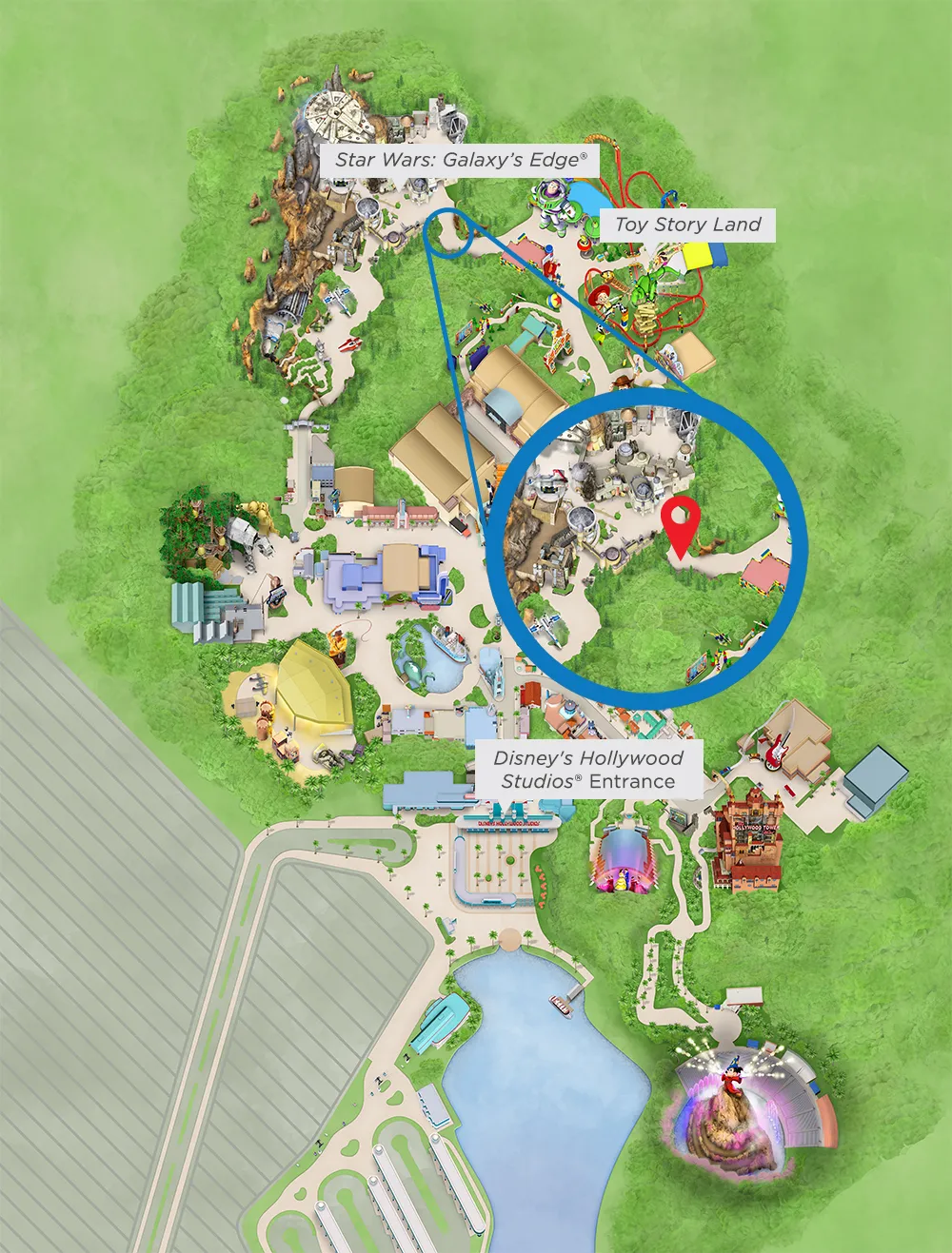 WHERE The Cardmember location at the entrance between Star Wars: Galaxy’s Edge® and Toy Story Land at Disney’s Hollywood Studios®.